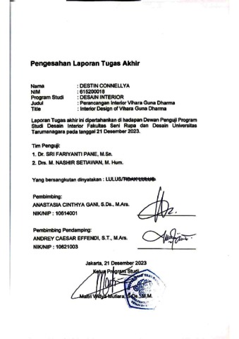 Connelya, Destin (2023) Perancangan interior Vihara Guna Dharma (DI - 2534). Skripsi thesis, Universitas Tarumanagara.