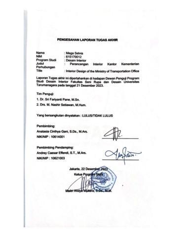 Selvia, Mega (2023) Perancangan interior kantor Kementrian Perhubungan (DI - 2536). Skripsi thesis, Universitas Tarumanagara.