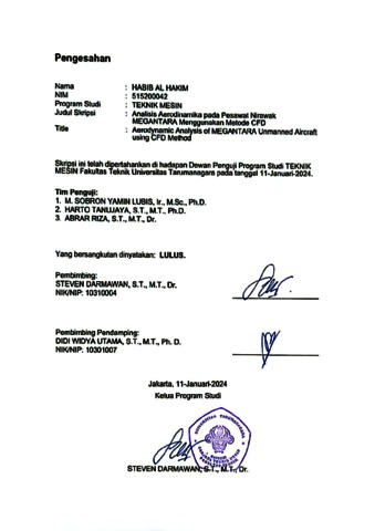 Al Hakim, Habib (2024) Analisis aerodinamika pada pesawat Nirawah MEGANTARA menggunakan metode CFD (TM - 1390). Skripsi thesis, Universitas Tarumanagara.