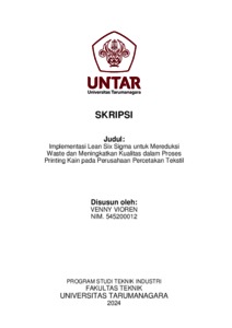 Vioren, Venny (2024) Implementasi lean six sigma untuk mereduksi waste dan meningkatkan kualitas dalam proses printing kain pada perusahaan percetakan tekstil (T. Ind - 841). Skripsi thesis, Universitas Tarumanagara.