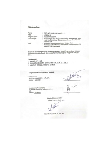 Daniella, Edeline Vanessa (2024) Perancangan dan pengukuran kinerja rantai pasok hijau pada produk medical consumables dengan pendekatan Green SCOR (T. Ind - 845). Skripsi thesis, Universitas Tarumanagara.