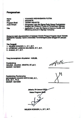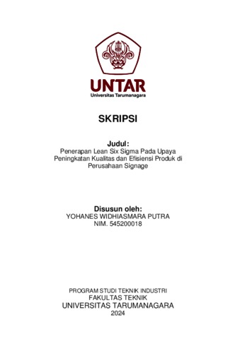 Putra, Yohanes Widhiasmara (2024) Penerapan Lean Six sigma pada upaya peningkatan kualitas dan efisiensi produk di perusahaan Signage (T. Ind - 846). Skripsi thesis, Universitas Tarumanagara.