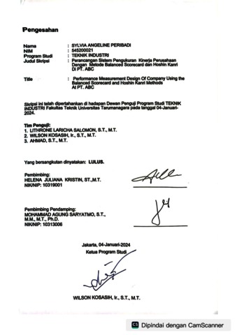 Peribadi, Sylvia Angeline (2024) Perancangan sistem pengukuran kinerja perusahaan dengan metode balanced scorecard dan Hosin kanri di PT. ABC (T. Ind - 849). Skripsi thesis, Universitas Tarumanagara.