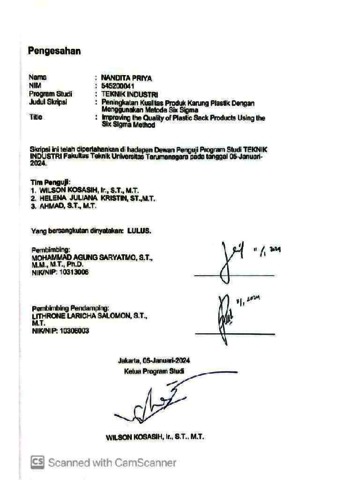 Priya, Nandita (2024) Peningkatan kualitas produk karung plastik dengan menggunakan metode Six Sigma (T. Ind - 862). Skripsi thesis, Universitas Tarumanagara.