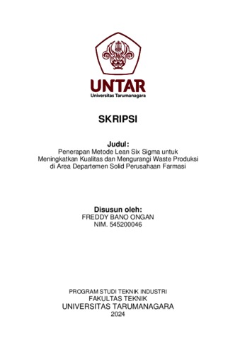 Ongan, Freddy Bano (2024) Penerapan metode Lean Six Sigma untuk meningkatkan kualitas dan mengurangi waste produksi di area departemen solid perusahaan farmasi (T. Ind - 866). Skripsi thesis, Universitas Tarumanagara.