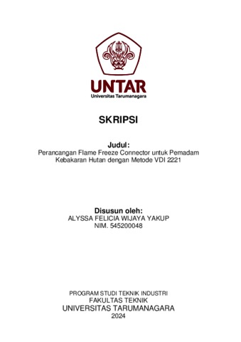 Yakup, Alyssa Felicia Wijaya (2024) Perancangan flame freeze connector untuk pemadaman kebakaran hutan dengan metode VDI 2221 (T. Ind - 868). Skripsi thesis, Universitas Tarumanagara.