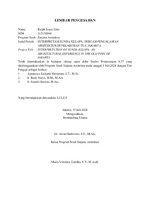 Salis, Ralph Louis (2024) Interpretasi Sunda Kelapa: sebuah pengalaman arsitektur di Pelabuhan Tua Jakarta. Skripsi thesis, Universitas Tarumanagara.