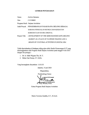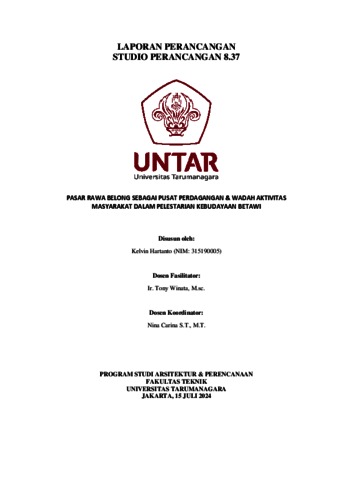 Hartanto, Kelvin (2024) Pasar Rawa Belong sebagai pusat perdagangan & wadah aktivitas masyarakat dalam pelestarian kebudayaan Betawi. Skripsi thesis, Universitas Tarumanagara.