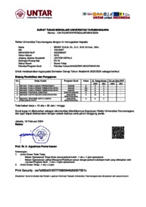 Djaja, Benny Surat Tugas Mengajar Nomor : 194-R/UNTAR/PENGAJARAN/II/2024. Universitas Tarumanagara.