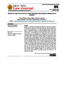 Widjaja, Viona and Djaja, Benny and Sudirman, Maman (2024) PROOF OF THE STATUS OF ILL-WED CHILDREN REGARDING INHERITANCE RIGHTS. Syiah Kuala Law Journal.