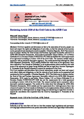 Winarsih, Winarsih and Djaja, Benny (2024) Reviewing Article 1320 of the Civil Code in the APJB Case. JLPH Journal of Law, Politic and Humanities.