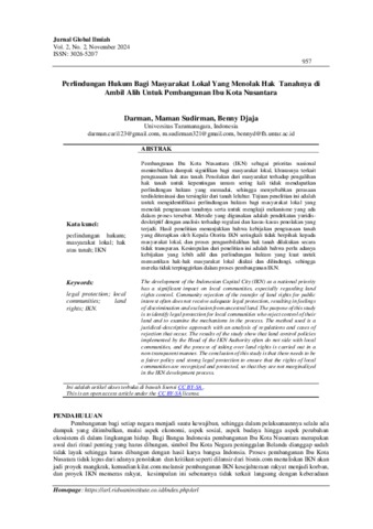 (NOMOR 45) Perlindungan Hukum Bagi Masyarakat Lokal Yang Menolak Hak Tanahnya di Ambil Alih Untuk Pembangunan Ibu Kota Nusantara.pdf Download (165kB) | Preview |