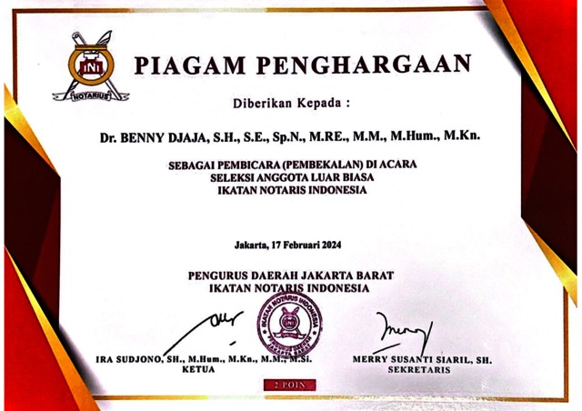 Djaja, Benny Sertifikat Sebagai Pembicara. ..