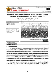 Dumais, Tiffany Noel and Soemartono, Gatot P. NUCLEAR-BASED NEW ENERGY DEVELOPMENT AS THE ANSWER TO ENVIRONMENTAL SUSTAINABILITY. Syiah Kuala Law Journal.