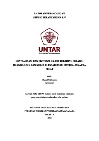 Williyanto, Daniel (2024) Revitalisasi dan ekstensi ex-Tio Tek Hong sebagai ruang musik dan kerja di Pasar Baru distrik, Jakarta Pusat. Skripsi thesis, Universitas Tarumanagara.
