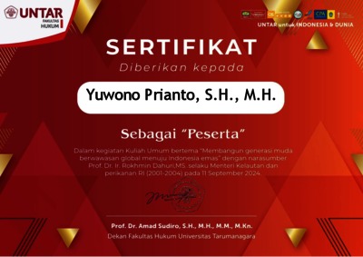 Prianto, Yuwono Sertifikat. Universitas Tarumanagara.