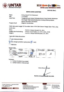 Sudiro, Amad Berita Acara Ujian Tugas Akhir. Universitas Tarumanagara.
