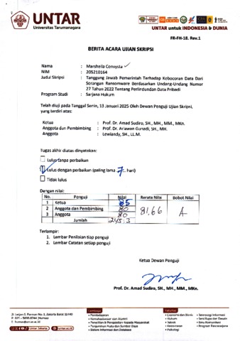 Sudiro, Amad Berita Acara ujian Skripsi. Universitas Tarumanagara.
