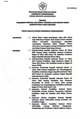 Hutabarat, Rugun Romaida Keputusan Dekan Fakultas Hukum Universitas Tarumanagara Nomor: 039-KD/FH-UNTAR/VIII/2024. Universitas Tarumanagara.