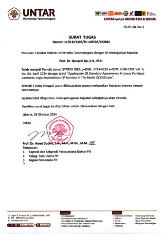 Rannu, Delycia Anwar and Gunardi, Lie APPLICATION OF STANDARD AGREEMENTS IN LEASE PURCHASE CONTRACTS: LEGAL IMPLICATIONS OF BUSINESS IN THE REALM OF CIVIL LAW. JOURNAL SYNTAX IDEA.