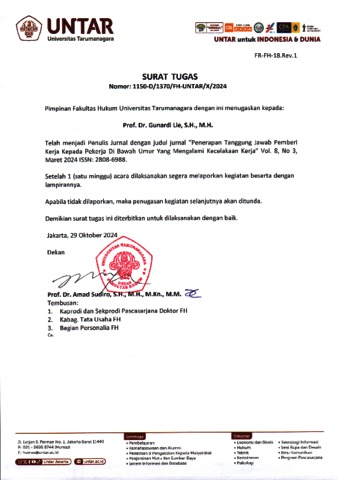 Gunardi, Lie and Rifel, Madeline (2024) Penerapan Tanggung Jawab Pemberi Kerja Kepada Pekerja Di Bawah Umur Yang Mengalami Kecelakaan Kerja. Action Research Literate, 8 (3).