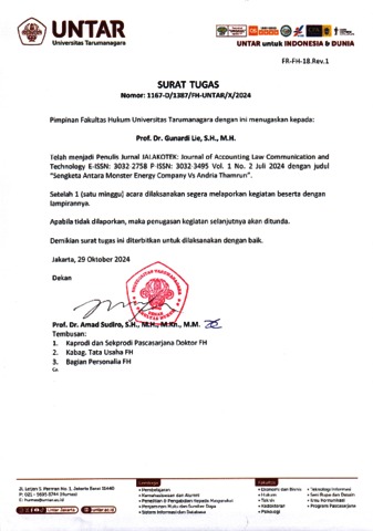 Octaviyanda, Shafarra (2024) Sengketa Antara Monster Energy Company Vs Andria Thamrun. JALAKOTEK: Journal of Accounting Law Communication and Technology.