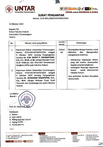 Djajaputra, Gunawan Keputusan Rektor Universitas Tarumanagara Nomor: 9754-KR/UNTAR/X/2024. ..