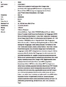 Kata Kunci : Perjanjian Kredit, Hak Tanggungan, Hukum Perdata (E) Isi : Berlakunya Undang-Undang Nomor 4 Tahun 1996 tentang Hak Tanggungan, maka setiap perbuatan membebankan Hak Atas Tanah sesuai dengan Undang-Undang Nomor 5 Tahun 1960 Tentang Pokok-Pokok Agraria, harus dilakukan dengan janji memberikan hak tanggungan melalui APHT sebagai jaminan pelunasan utang dari debitur, yang mana Akta Pemberian Hak Tanggungan tersebut merupakan hal yang tidak terpisahkan dari perjajian utang-piutang yang bersangkutan. Namun dalam perkembangannya terdapat bank yang memberikan kredit kepada nasabahnya tanpa diikuti dengan APHT. Bagaimanakah status perjanjian kredit tersebut jika dibuat tanpa APHT, yang dalam kenyataanya dalam UUHT diharuskan adanya APHT dan bagaimana akibat hukum terhadap perjanjian kredit jika dibuat tanpa APHT. Metode penelitian yang dipakai adalah menggunakan tipe penelitian normatif dari data primer dan sekunder yang dianalisis secara kualitatif. Adapun status hukum dari perjanjian kredit tersebut adalah tetap sah secara hukum, dan akibat hukum terhadap perjanjian kredit tanpa APHT adalah kedudukan kreditur menjadi kreditur konkuren, dimana pelunasan utangnya disamakan dengan utang-utang kreditur lainnya. (F) Acuan : 15 (1993-2007) (G) Pembimbing : Sri Bakti Yunari, S.H., M.H. (H) Penulis : Sugito
