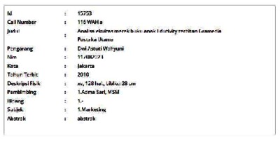 Wahyuni, Dwi Astuti (2010) Analisa ekuitas merek buku anak Edutivity terbitan Gramedia Pustaka Utama. Informasi Detail Skripsi. p. 128. ISSN 117082023