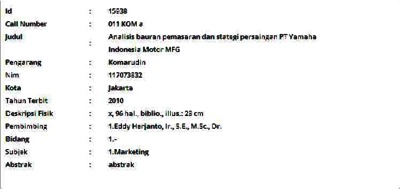 Komarudin, Komarudin (2010) Analisis bauran pemasaran dan stategi persaingan PT Yamaha Indonesia Motor MFG. Informasi Detail Skripsi/Thesis. p. 96. ISSN 117073832