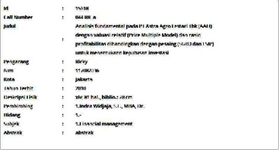Ricky, Ricky (2010) Analisis fundamental pada PT Astra Agro Lestari Tbk (AALI) dengan valuasi relatif (Price Multiple Model) dan rasio profitabilitas dibandingkan dengan pesaing (SGRO dan LSIP) untuk menentukann keputusan investasi. Informasi Detail Skripsi/Thesis. p. 81. ISSN 117082036