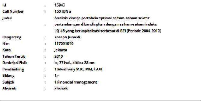 Junaidi, Yoseph (2010) Analisis kinerja portofolio optimal saham-saham sektor pertambangan dibandingkan dengan saham-saham indeks LQ-45 yang berkapitalisasi terbesar di BEI (Periode 2004-2010). Informasi Detail Skripsi/Thesis. p. 77. ISSN 117091019