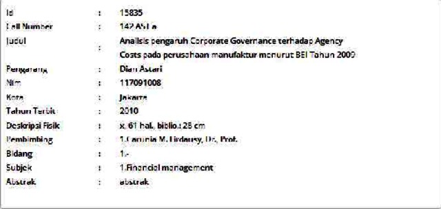 Astari, Dian (2010) Analisis pengaruh Corporate Governance terhadap Agency Costs pada perusahaan manufaktur menurut BEI Tahun 2009. Informasi Detail Skripsi/Thesis. p. 61. ISSN 117091008
