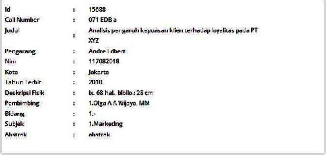 Edbert, Andre (2010) Analisis pengaruh kepuasan klien terhadap loyalitas pada PT XYZ. Informasi Detail Skripsi/Thesis. p. 68. ISSN 117082018