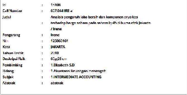 Irene, Irene (2010) Analisis pengaruh laba bersih dan komponen arus kas terhadap harga saham pada saham lq-45 di bursa efek Jakarta. Informasi Detail Skripsi/Thesis. p. 65. ISSN 125060161