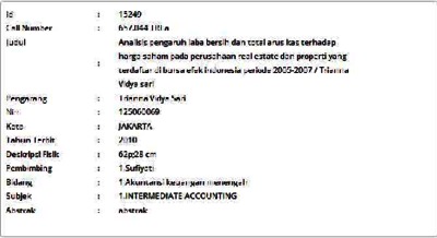 Vidya Sari, Triyanna (2010) Analisis pengaruh laba bersih dan total arus kas terhadap harga saham pada perusahaan real estate dan properti yang terdaftar di bursa efek indonesia periode 2005-2007. Informasi Detail Skripsi/Thesis. p. 62. ISSN 125060069