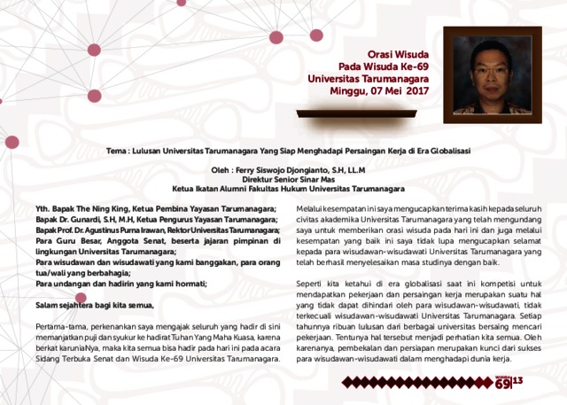 UNTAR, WISUDA Orasi Ilmiah Wisuda Untar ke 69. Orasi Ilmiah Wisuda Untar ke 69.