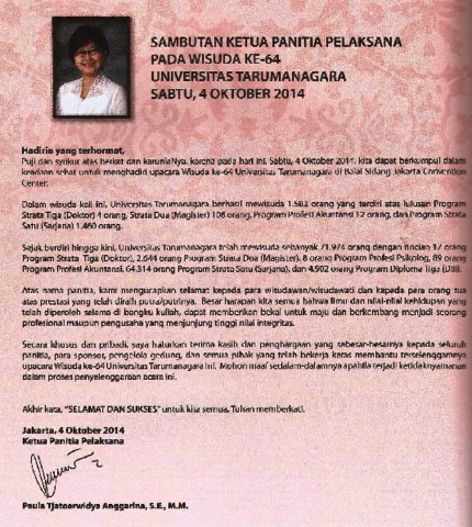 UNTAR, WISUDA Sambutan Wisuda Untar ke 64. Sambutan Wisuda Untar ke 64.