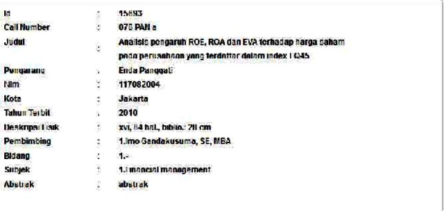 Panggati, Enda (2010) Analisis pengaruh ROE, ROA dan EVA terhadap harga saham pada perusahaan yang terdaftar dalam index LQ45. Informasi Detail Skripsi/Thesis. p. 84. ISSN 117082004