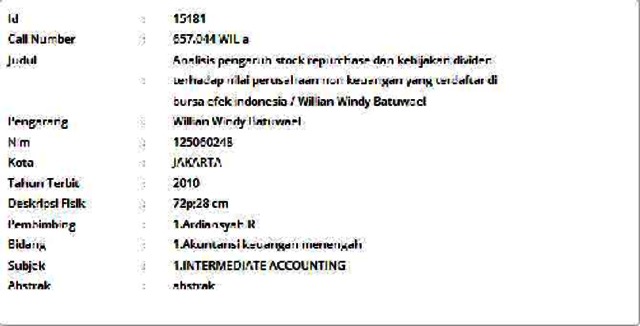 Batuwael, Willian Windy (2010) Analisis pengaruh stock repurchase dan kebijakan dividen terhadap nilai perusahaan non keuangan yang terdaftar di bursa efek indonesia. Informasi Detail Skripsi/Thesis. p. 72. ISSN 125060248
