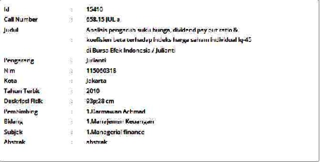 Julianti, Julianti (2010) Analisis pengaruh suku bunga, dividend pay out ratio & koefisien beta terhadap indeks harga saham individual lq-45 di Bursa Efek Indonesia. Informasi Detail Skripsi/Thesis. p. 93. ISSN 115060318