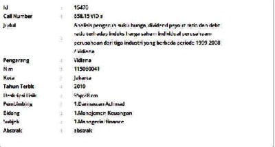 Vidiana, Vidiana (2010) Analisis pengaruh suku bunga, dividend payout ratio dan debt ratio terhadap indeks harga saham individual perusahaan-perusahaan dari tiga industri yang berbeda periode 1999-2008. Informasi Detail Skripsi/Thesis. p. 95. ISSN 115060041