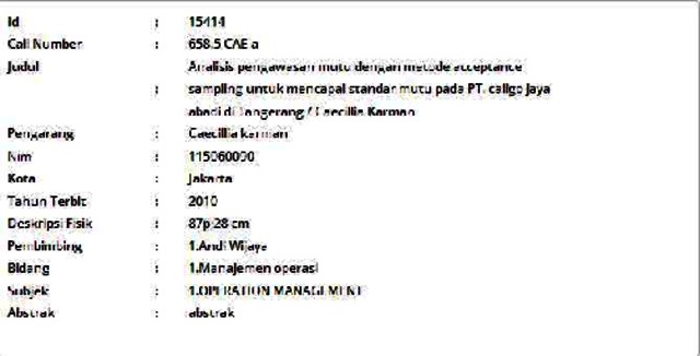 Karman, Caecillia (2010) Analisis pengawasan mutu dengan metode acceptance sampling untuk mencapai standar mutu pada PT. caligo jaya abadi di Tangerang. Informasi Detail Skripsi/Thesis. p. 87. ISSN 115060090