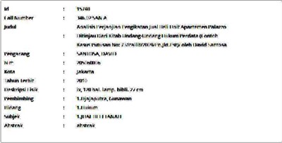 Santosa, David (2010) Analisis Perjanjian Pengikatan Jual Beli Unit Apartemen Palazzo Ditinjau Dari Kitab Undang-Undang Hukum Perdata (Contoh Kasus Putusan No: 73/Pailit/2009/Pn.Jkt.Pst). Informasi Detail Skripsi/Thesis. p. 120. ISSN 205060006