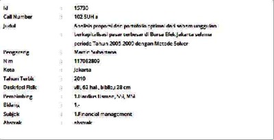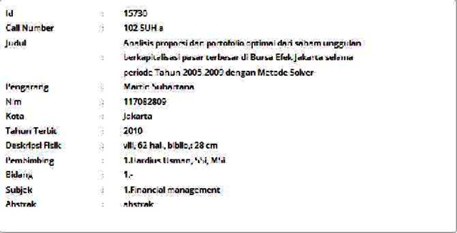Suhartana, Martin (2010) Analisis proporsi dan portofolio optimal dari saham unggulan berkapitalisasi pasar terbesar di Bursa Efek Jakarta selama periode Tahun 2005-2009 dengan Metode Solver. Informasi Detail Thesis. p. 62. ISSN 117082809