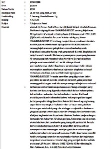 (A) Nama : Andre Octarvian (B) Judul Skripsi : Analisis Putusan Mahkamah Agung Nomor 190.K/PID.SUS/2007 tentang Kejahatan Mengeksplotasi Seksual Terhadap Anak. (C) Halaman : vii + 99 + 2009 (D) Kata Kunci : Analisis Putusan Mahkamah Agung Nomor 190.K/PID.SUS/2007 (E) Isi : Yang menjadi fokus penulisan ini adalah analisis putusan Mahkamah Agung nomor 190.K/PID.SUS/2007 tentang kejahatan mengeksploitasi seksual terhadap anak. Eksploitasi seksual terhadap anak yang terjadi di Jambi. Eksploitasi ini terjadi atas diri atas diri Rini seorang anak perempuan yang berumur 15 tahun yang oleh Huzaimah alias Nani binti Dungcik dijadikan pekerja seks komersial di Caf? Leo 88 miliknya. Pokok permasalahannya adalah Bagaimana pertimbangan hakim dalam menerapkan pasal terhadap kasus kejahatan eksploitasi seksual terhadap anak dalam putusan Makamah Agung nomor 190.K/PID.SUS/2007 ? metode penelitian yang digunakan dalam penelitian ini adalah metode penelitian normatif, yakni penelitian tentang perlindungan anak khususnya mengenai kejahatan seksual terhadap anak berdasarkan perturan perundang-undangan yang berlaku dan data yang digunakankan adalah bahan hukum primer, bahan hukum sekunder dan bahan hukum tersier. Dari hasil anaslisis penulisan ini diketahui bahwa hakim pengadilan negeri Jambi, pengadilan tinggi Jambi dan hakim Mahkamah agung kurang tepat dalam menerapkan hukuman dan terkesan mengabaikan keterangan saksi-saksi yang ada sehingga menjatuhkan hukuman yang paling ringan terhadap Huzaimah sehingga tidak memeberikan efek jera bagi terdakwa. Huzaimah dihukum 3 tahun penjara dengan kemungkinan hukuman 10 tahun penjara. Keterangan saksi seakan-akan diabaikan oleh para hakim yang mengadili perkara ini. Penulis berharap sebaiknya para hakim di pengadilan berlaku adil dan memeperhatikan keterangan saksi yang ada karena keterangan saksi adalah alat bukti yang paling utama. Hakim juga harus memiliki hati hurani yang benar dan memperhatikan korban dari kejahatan eksploitasi sexual tersebut terlebih lagi yang menjadi korban adalah anak-anak. (F) Acuan : 15 buku (1982 ? 2004 ). (G) Pembimbing Dr. Dian Adriawan, S.H., M.H. (H) Penulis : Andre Octavian