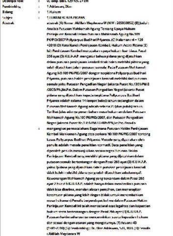 Meydevera W, Aldillah (2010) Analisis putusan Mahkamah Agung tentang upaya hukum peninjauan kembali dalam putusan Mahkamah Agung No. 109 PK/PID/2007 Pollycarpus Budihari Priyanto. Informasi Detail Skripsi. p. 129. ISSN 205060052