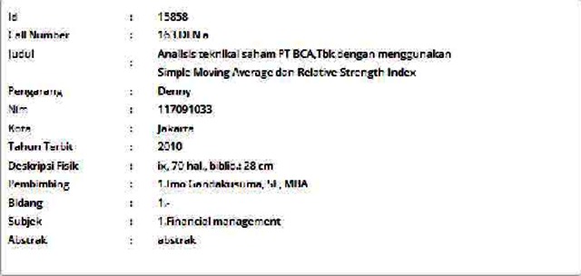 Denny, Denny (2010) Analisis teknikal saham PT BCA,Tbk dengan menggunakan Simple Moving Average dan Relative Strength Index. Informasi Detail Thesis. p. 70. ISSN 117091033