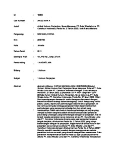 RATNA, MARIANA Akibat Hukum, Perjanjian, Sewa Menyewa, PT. Duta Wisata Loka, PT. Carrefour Indonesia, Perda No. 2 Tahun 2002./ oleh Ratna Mariana. skripsi.