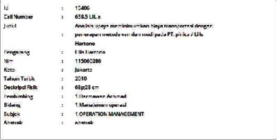 Hartono, Lilis (2010) Analisis upaya meminimumkan biaya transportasi dengan penerapan metode van dan modi pada PT. pinica. Informasi Detail Skripsi. p. 68. ISSN 115060286